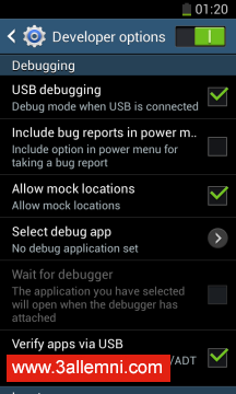 - سوف تدخل على اعدادات الهاتف “Settings” ثم بعد ذلك “Developer Options” ثم “USB Debugging” و تقوم بتفعيلها