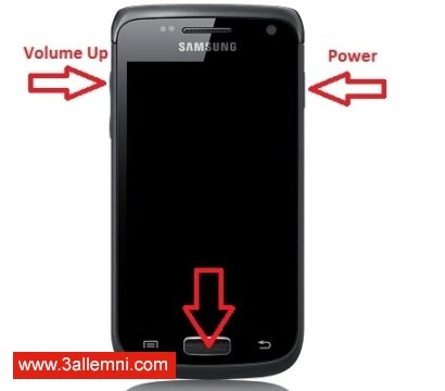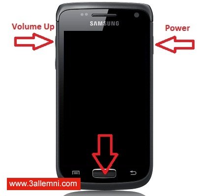 - الان سوف يعلق الهاتف الخاص بك اثناء الفتح لذلك يجب عليك الدخول الى وضع الريكفرى “Recovery Mode” و ذلك عن طريق الضغط على (زر رفع الصوت + زر الـ Home + زر الـ Power) معا فى وقت واحد
