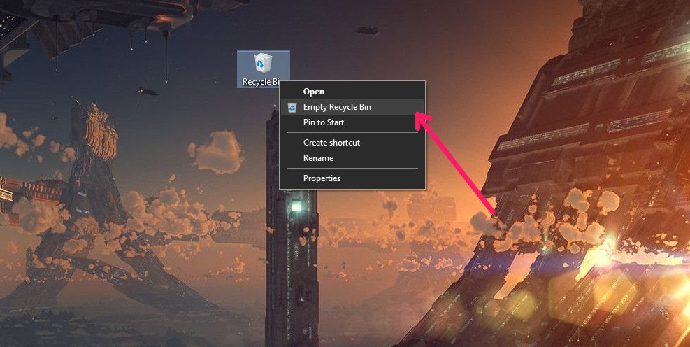 في كل مره تقوم بحذف اي ملف باستخدم زر Delete فانه يقوم بترحيل ذلك الملف الى سلة المهملات و بالتالي فان مساحة سلة المهملات تزيد بزيادة ما تقوم بحذفه لذلك انتقل الى سلة المهملات “Recycle Bin” و اضغط على الزر الايمن للماوس و اختر Empty Recycle Bin من اجل تفريغ مساحة على محرك الاقراص خاصتك .
