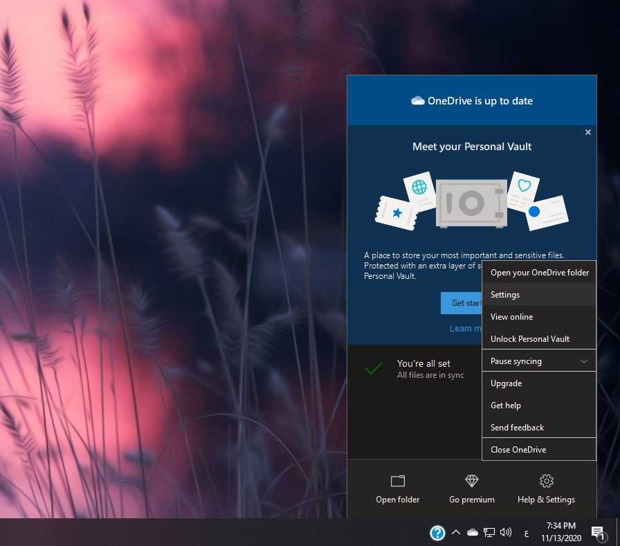 - ستظهر لك قائمة اختر settings في الشريط العلوي ثم حدد Save space and download files as you use them