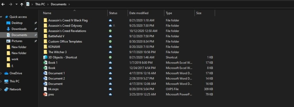 سيسمح لك هذا الإعداد بمشاهدة الملفات التي قمت بتخزينها في OneDrive من File Explorer على جهاز الكمبيوتر الخاص بك و ستلاحظ ثلاثة رموز مختلفة لملفات OneDrive في عمود الحالة “Status column” :