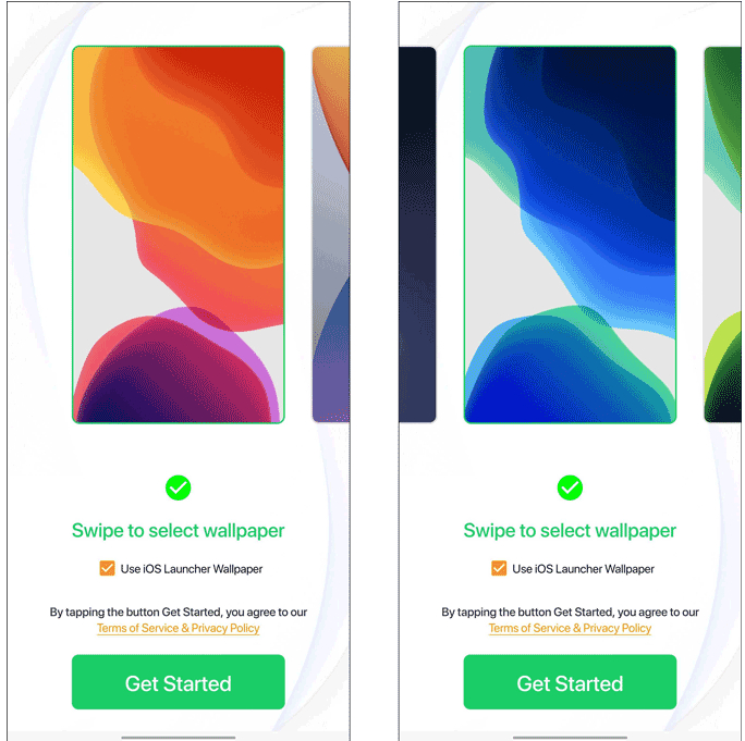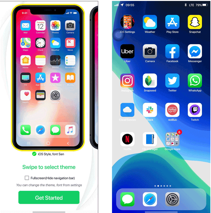 - الان قم بالضغط على البدء “Get started” و الان تم تحويل شكل الاندرويد الى ايفون من حيث الشاشة الرئيسية .