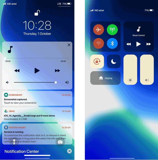 - الآن يمكنك التمرير لأسفل من أعلى اليسار للوصول إلى لوحة التحكم ومن أعلى اليمين للوصول إلى الإشعارات.