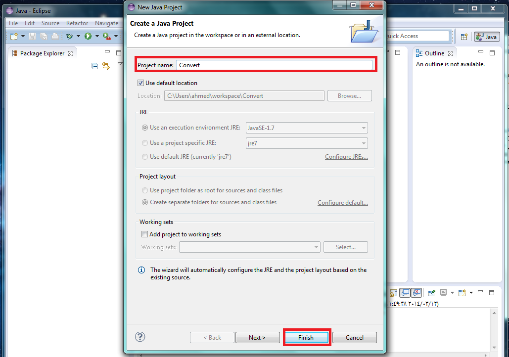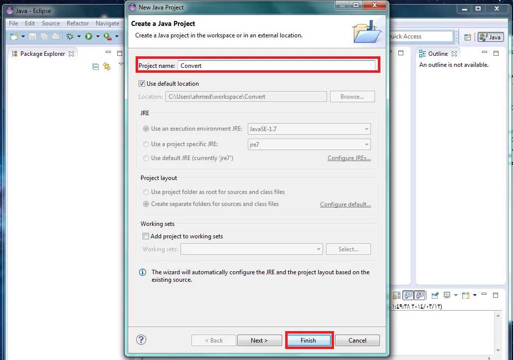 1- نقوم بفتح برنامج eclipse ثم من قائمة file نختار new java project