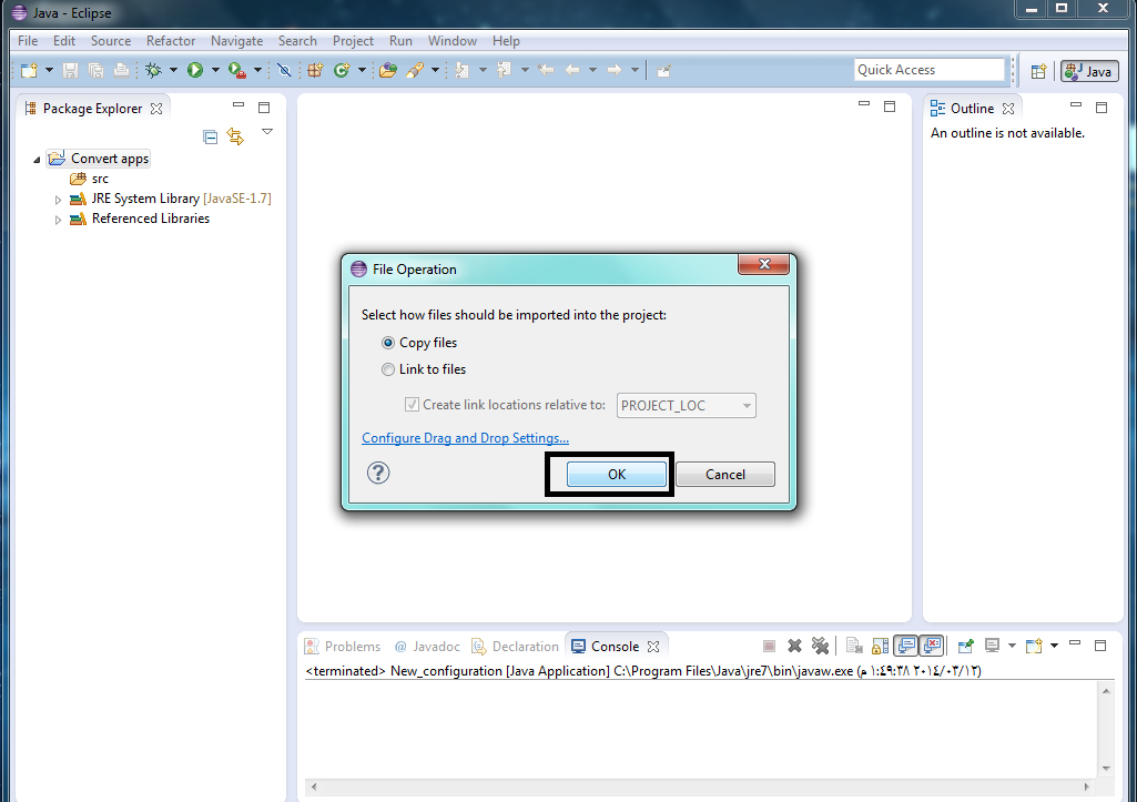 7– كليك يمين علي المشروع واختر Run As >> Run Configurations