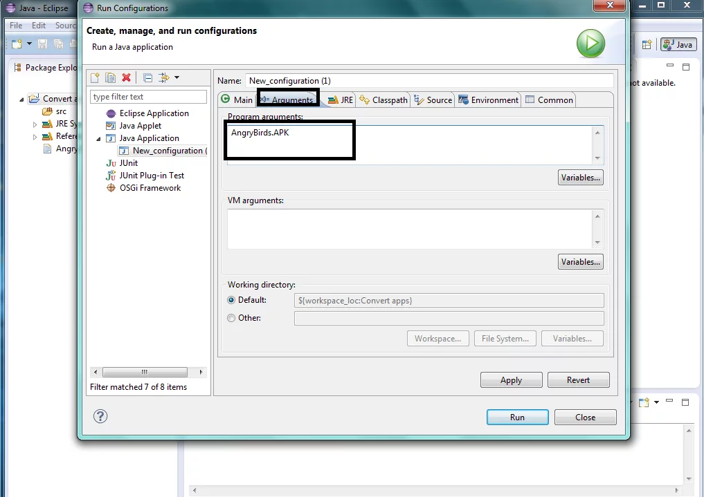 9-اختر Arguments واكتب اسم البرنامج apk ***