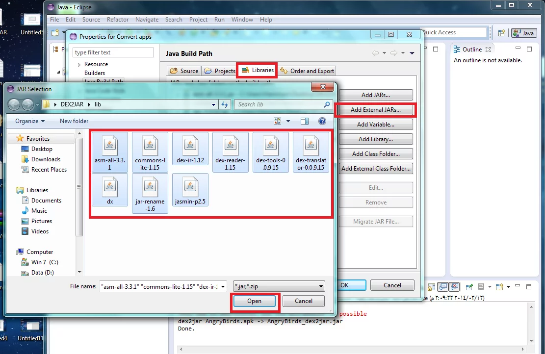 5- اختار Libraries>Add External Jars>browse