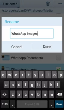 • قم بأختيار WhatsApp Imges و أضغط علي خيار تعديل الأسم .