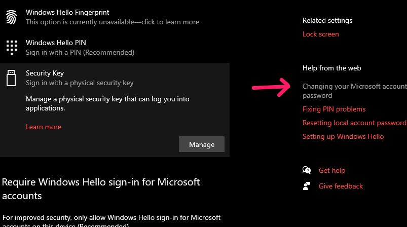 - اذا لم تلاحظ وجود change password كما في الصوره اعلاه فانت تقوم باستخدام حساب مايكروسوفت للدخول على ويندوز مما يعني ان الباسورد الخاص بويندوز هو نفسه الباسورد الخاص بحسابك على مايكروسوفت و بالتالي قم بالضغط على changing Your Microsoft account password .