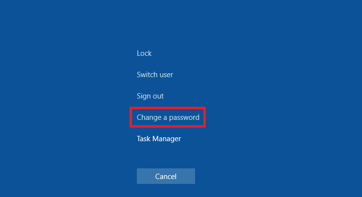 اذا كنت تستخدم ويندوز 10 في العمل “Business Domain” فيمكنك تغيير الباسورد من خلال الضغط على alt + ctrl + delete معا في نفس الوقت و اختر change a password .