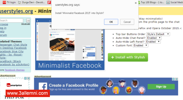 - سوف يقوم بتحويلك بعد ذلك الى موقع اخر سوف تجد به مجموعه كبيره من التصميمات الاخرى و التى سوف تعدل بشكل رائع فى شكل الفيسبوك و سوف تختار منها و احدا ثم اضغط على “Install” لتثبيته