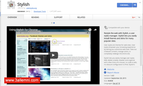 - اولا يجب عليك تثبيت اداه “Stylish” و التى سوف تجدها فى المتجر الخاص بالادوات لمتصفح جوجل كروم او من الرابط التالى : تحميل Stylish