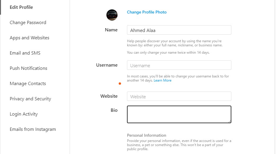 • الآن يمكنك تغيير السيرة الذاتية في حساب انستقرام الخاص بك وذلك من خلال الدخول إلى موقع أو تطبيق انستقرام ثم قم بالدخول إلى الإعدادات وقم بلصقه في خانة الـ Bio.