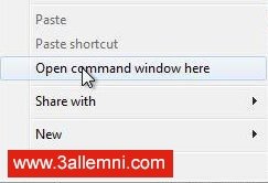 - فى الملف الذى قمنا بتحميل و فك محتوياته سوف تقوم بالضغط على زر Shift ثم فى اى مكان فارغ تضغط على زر الماوس الايمن و تختار منه “Start command prompt here“