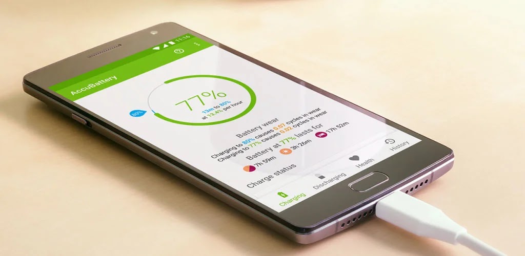 الطرق السابقة تعمل بكفاءه وبشكل تقليدي وسريع أيضاً ولكن إن كنت تريد تحليل مفصل حول حالة البطارية فهناك العديد من التطبيقات تؤدي هذه الوظيفه وتقوم بتحليلها بشكل مفصل ولكن واحد من بين التطبيقات الموثوق بها وفي دقتها تطبيق AccuBattery