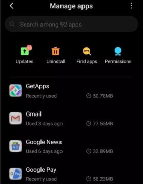 حذف التطبيقات من الأندرويد من خلال قائمة التطبيقات