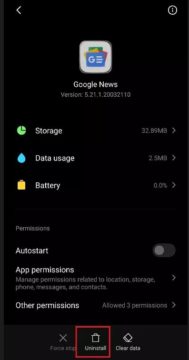 بعد الضغط على معلومات التطبيق قم بالنقر على إزالة “Uninstall” وقم بتأكيد ذلك وسوف يتم حذف التطبيق من هاتفك تمامًا.