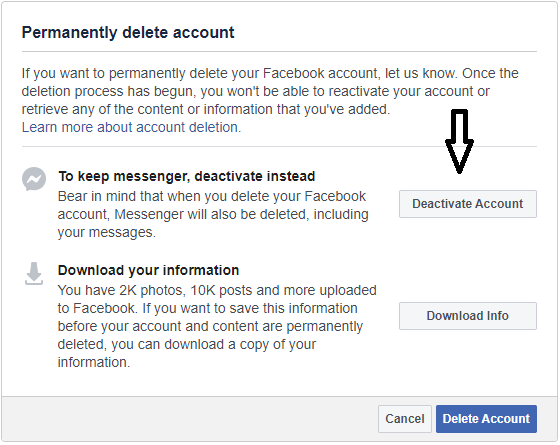 حذف حساب فيسبوك نهائيا او ايقاف نشاطه لفتره و كيفية ارشفة البيانات الشخصية