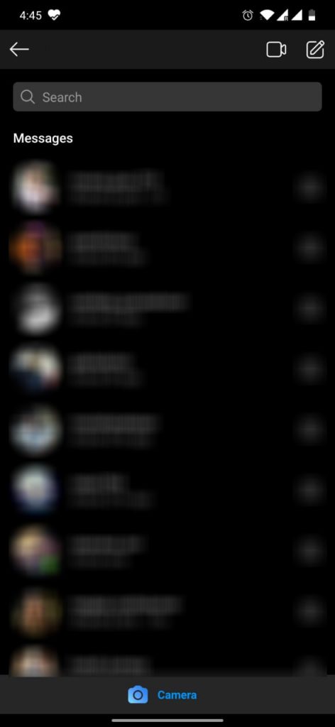 • انقر على أيقونة ارسال رسالة “DM” في الزاوية اليمنى العليا أو بسحب الشاشه من الجانب الأيمن لدخول قسم الرسائل.