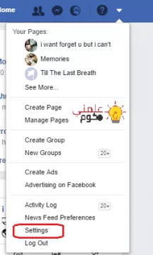 - قم بالضغط علي السهم الخاص بالخيارات من أعلي يمين الشاشة و قم بالدخول علي خيار الإعدادات Settings .