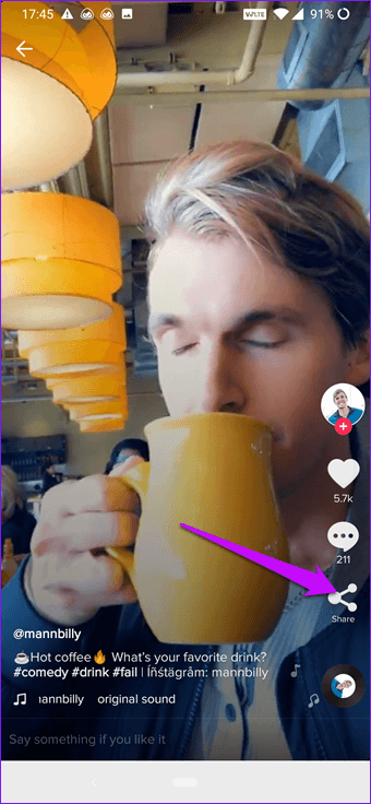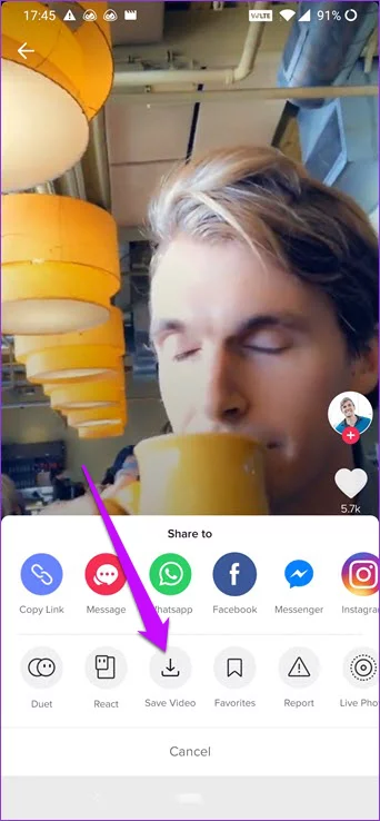 هذه هي الطريقة الرئيسية التي تمكنك من تحميل الفيديوهات من تيك توك على هاتفك الأندرويد مباشرةً.