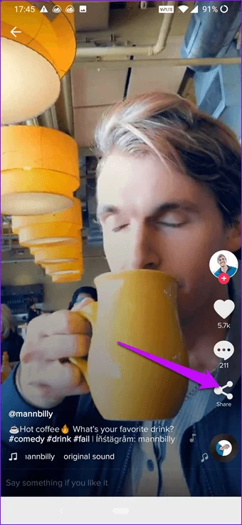 الخطوة 1: قم بفتح الفيديو المراد تحميله على هاتفك من تطبيق تيك توك.