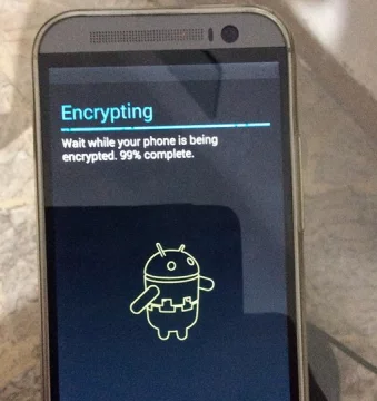 في حال الموافقة على اجراء عملية الشفير سيقوم الهاتف تلقائيا باعادة التشغيل والبدء فى عملية تشفير البيانات حيث ان هذة العملية من الممكن ان تستغرق من 10 الى 15 دقيقه تقريبا ويجب عليك ان تتأكد من توصيل الشاحن بالهاتف أثناء القيام عملية التشفير .
