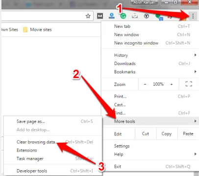 3-قم بالضغط علي More Tools , ثم Clear Browsing Data.