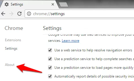 في بعض الأحيان قد يأتي الخطأ بسبب نسخة قديمة من كروم كذلك . لذلك، تأكد من أن لديك أحدث نسخة من الكروم مثبت على جهازك. إذا لم يكن كذلك، قم بتحديثه.