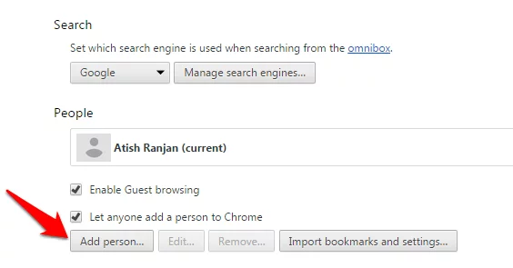 قم بالأنتقال الي صفحه الاعدادات ثم قم بأختيار “People” , ثم اختر Add Person.