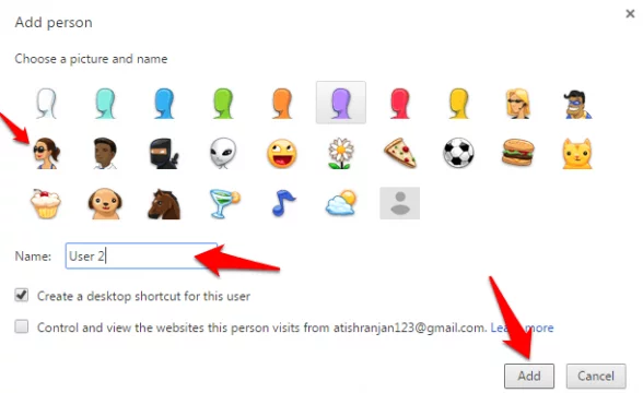 8) قم بإنشاء حساب مستخدم جديد في كروم.