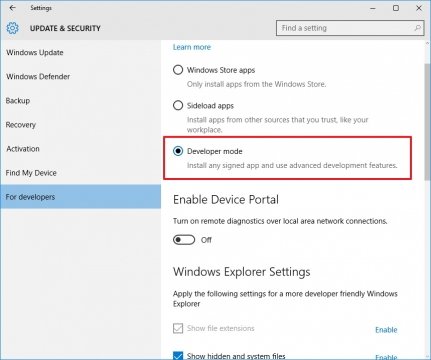 • قم بتشغيل وضع المطورين “Developer Modeكيفيه تثبيت أوبونتو باش Bash على ويندوز 10