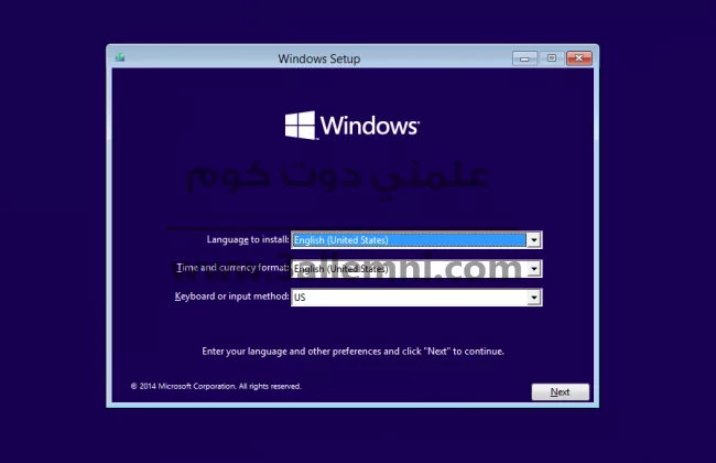 بعدما تقوم بأختيار لغه نظام التشغيل و لغه الكتابه الخاصه بالكيبورد تقوم بالضغط على Next و بعدها سوف تظهر لك نافذه جديده بها Install Now و التى يجب ان تقوم بالضغط عليها