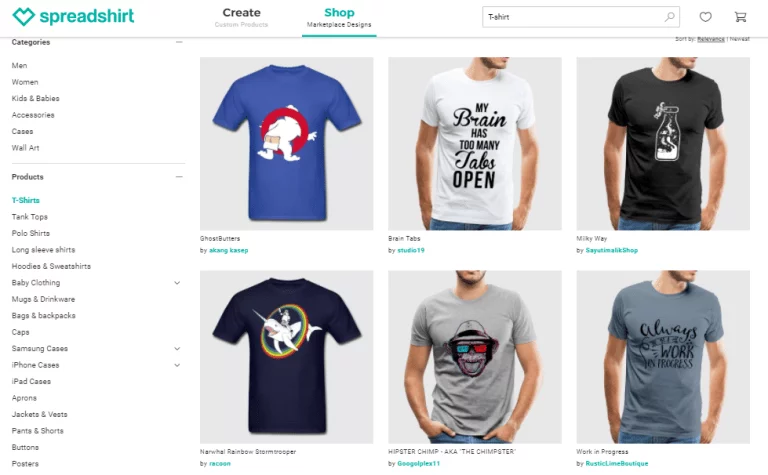- يقوم موقع spreadshirt ببيع التصميم على التيشرتات والقمصان والهواتف وغيرها من المنتجات الأخرى.