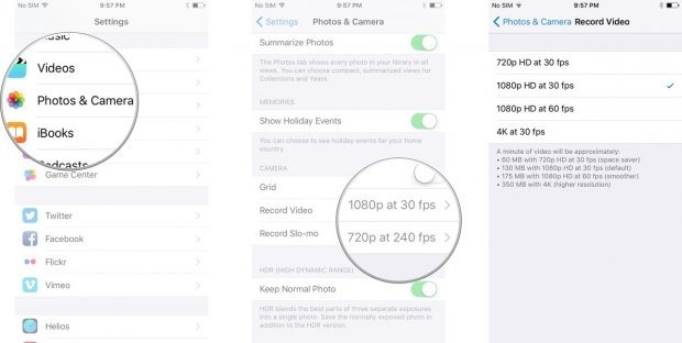 هاتف الايفون الخاص بك ليس مجرد كاميرا ولكنه مسجل فيديو رائع يمتاز بدقة عالية جدا في تصوير الفيديوهات يستطيع هاتفك ان يسجل فيديو بدقة 60 اطار في الثانية ودقة 4K كما يمكنك ايضا تصوير فيديو تصوير بطئ ( slow motion )