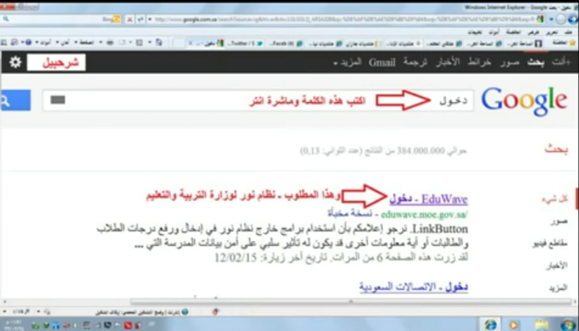 ندخل على جوجل ونكتب في خانة البحث في الأعلى دخول نظام نور الجديد ومنها نختار أو خيار لدينا وهو (دخول-Edu Wave ).