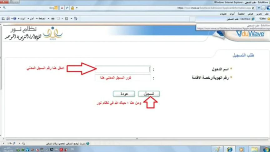 وفيما يلي سنقوم بشرح خطوات التسجيل في نظام نور لأولياء الأمور وتوضيحها بالصور: