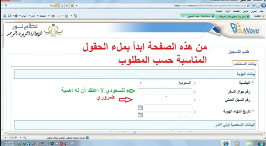 في حالة كان الشخص غير سعودي يقوم بكتابة رقم جواز السفر أما السعودي يقوم بكتابة رقم السجل المدني، ثم إكمال باقي البيانات.
