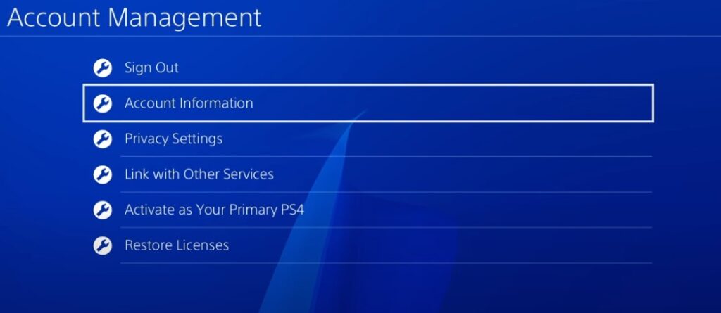كانت تلك الخطوه الاولى في تغيير باسورد ps4