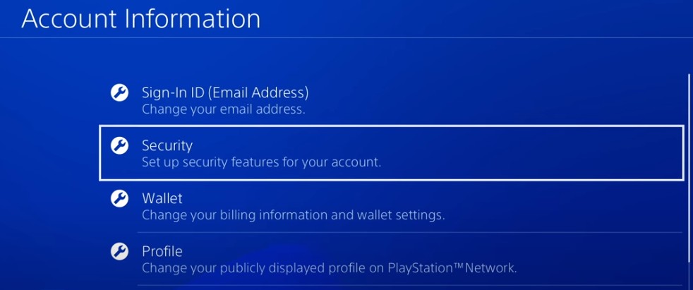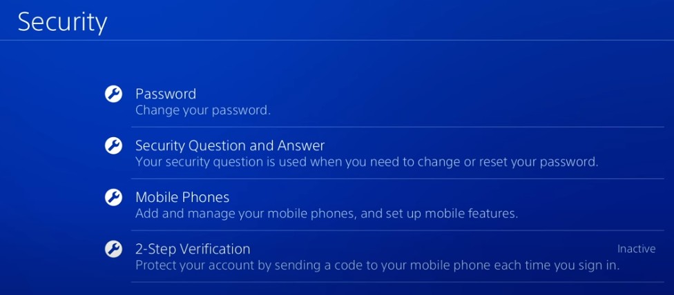 - سيتم تحويلك الى قائمة تحتوي على 4 خيارات تساعد جميعها في تأمين حسابك على PS4