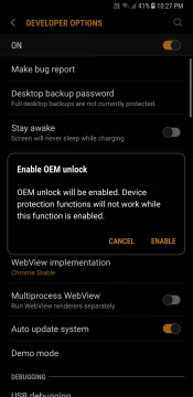 قم بالرجوع الي القائمة الرئيسية وقم بالدخول الي خيارات المطورين و قم بتفعيل OEM Unlock .