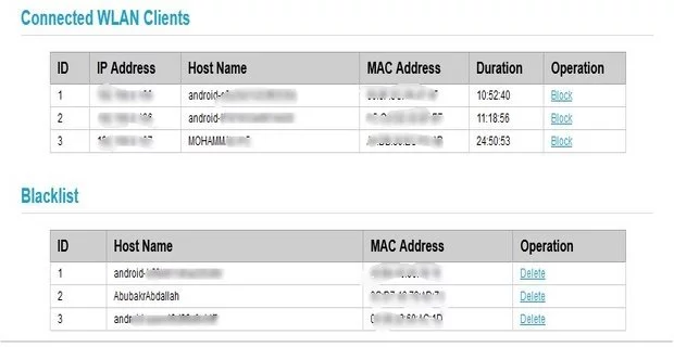 - رابعا : فلترة الأجهزة المتصلة بـ “WiFi” .-معظم أجهزة الراوتر الحديثة تتيح أمكانية عرض كل الأجهزة المتصلة بشبكة الـ “WiFi” , عن طريق هذة الميزة يمكنك معرفة اذا كان هناك أجهزة غريبة متصلة معك على شبكة “WiFi” الخاصة بك , عند معرفتك لهذة الأجهزة الغريبة قم بحظرها من الدخول على الفور .