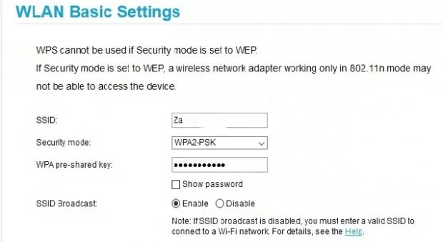 - ثانيا : تغيير الأسم الخاص بشبكة “الـWiFi” .– الاسم الأفتراضى للشبكة المعروف بأسم “SSID” يعطى فى بعض الأحيان لمحة عن نوع الراوتر ورقم الموديل الخاص به مما قد يسهل الحصول على البيانات الهامة لهذا الجهاز مثل بيانات تسجيل الدخول ولذلك يتوجب عليك تغيير الأسم الأفتراضى للشبكة الى اى أسم اخر قد يعجبك .