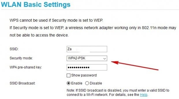 – نأتى الى أهم خطوة من تلك الخطوات جميعا حيث كل أجهزة الراوتر التى صنعت فى آخر 10 سنين كانت جميعها تحمل خاصية التشفير او الحماية فقم بأختيار وضع الحماية “WPA2-PSK” ويمكن عمل لكل شبكة “WiFi” رمز حماية خاص بها ولكن تأكد من أختيارك لرمز حماية قوى .