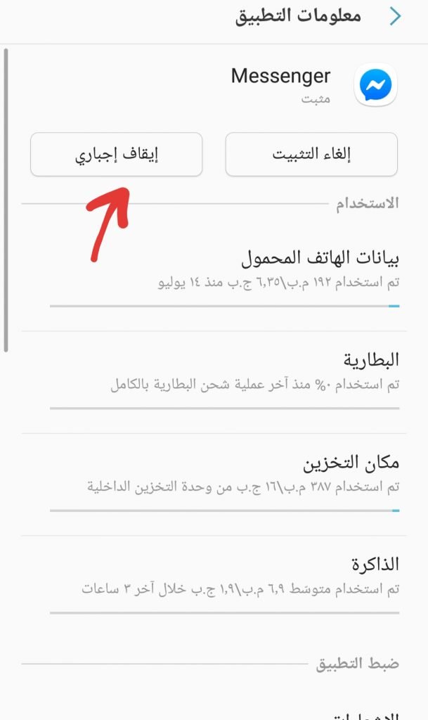 قد تواجهك مشكلة عندما تدخل لمعلومات التطبيق و هي أن خيار حذف البيانات قد لا يكون مفعلًا ، و في هذه الحالة سيتطلب منك أولاً أن تقوم بإيقاف التطبيق إجباريًا ثم قم بمحاول حذف البيانات من خلال معلومات التطبيق مرة أخرى و من المفترض أن تكون متاحة هذه المرة.