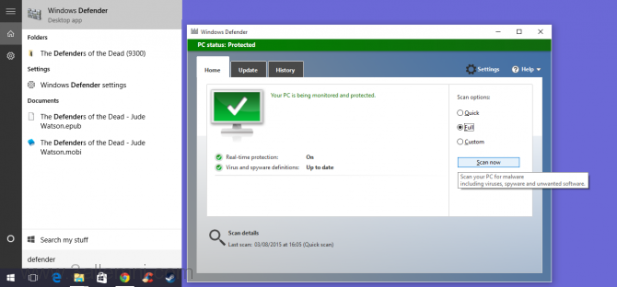 - الخطوه الاولى : عمل فحص على النظام لتأكد من عدم موجود فيروسات باستخدام “Windows Defender” الخاص بويندوز 10