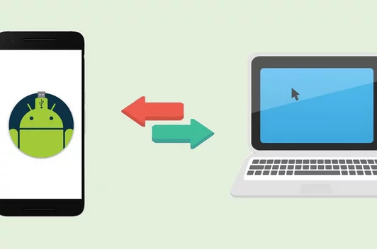 - يتم التوصيل بين الهاتف وجهاز الكمبيوتر عن طريق كابل USB ثم اضغط على Click Transfer، بعد الضغط على Click Transfer حدد ما هو الجهاز الذي تريد نقل البيانات من عليه إلى الجهاز الآخر.