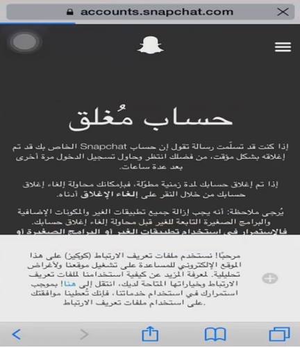 - ثم قم بالتوجه إلى أسفل هذه الصفحة، واضغط على زر الغاء القفل حتى يتم فك حظر حساب سناب شات التابع لك.