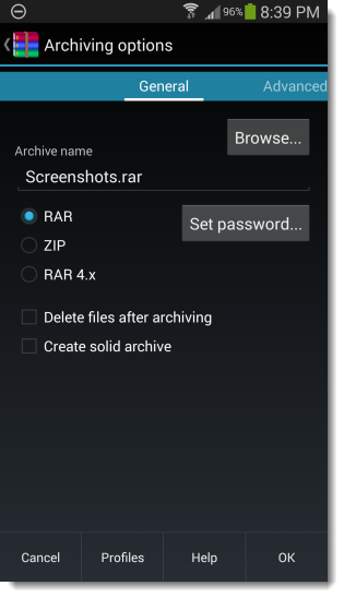 123123123 يتعرض البعض من مستخدمى نظام الاندرويد لصعوبه فى فط الملفات المضغوطه بصيغ الضغط مثل Rar و Zip و ذلك نظرا لعد توافر برنامج يقوم بفك الملفات المضغوطه . اطلقت Winrar مؤخرا برنامجها المعروف Winrar البرنامج الذى يعد رقم واحد فى ضغط الملفات لاقل حجم ممكن او فك الملفات التى تم تحميلها تطبيقها الاخير الذى يعمل على نظام الاندرويد لتفتح مجالا لانتشار الملفات المضغوطه على الاجهزه التى تعمل بنظام الاندرويد . حيث يمكننا ضغط الملفات بأى صيغه من الصيغ الوارده فى الصوره التاليه مع امكانيه وضع كلمه سر للملف المضغوط 123123 و يمكننا فك الملفات بنفس الطريقه المستخدمه على الكمبيوتر بالضغط على Extract و فك الملف .   لتحميل التطبيق من جوجل بلاى :