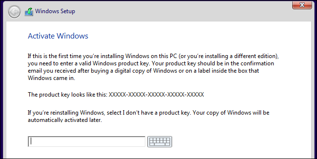 في الحقيقة لا تحتاج ويندوز 10 مفتاح التفعيل كي تتمكن من تثبيتها، بل يمكنك تثبيتها وتخطي مرحلة إدخال مفتاح التفعيل مع تجاهل التحذيرات التي تظهر لك، وبذلك سوف يتم تثبيت ويندوز 10 على جهازك، ولكنك لن تتمكن من القيام بالكثير من الأشياء مثل تغيير الإعدادات وما إلى ذلك، وسوف تقوم الويندوز بإظهار رسائل مزعجة تطلب منك إدخال مفتاح التفعيل.